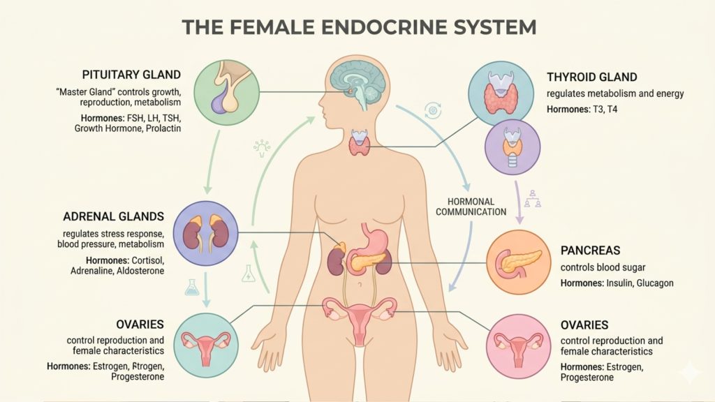 Hormonal imbalance happens because the endocrine system works like a communication network. The brain, ovaries, thyroid, adrenal glands, pancreas, and other organs constantly send and respond to signals. If one part of that signalling system changes, other parts can be affected too.