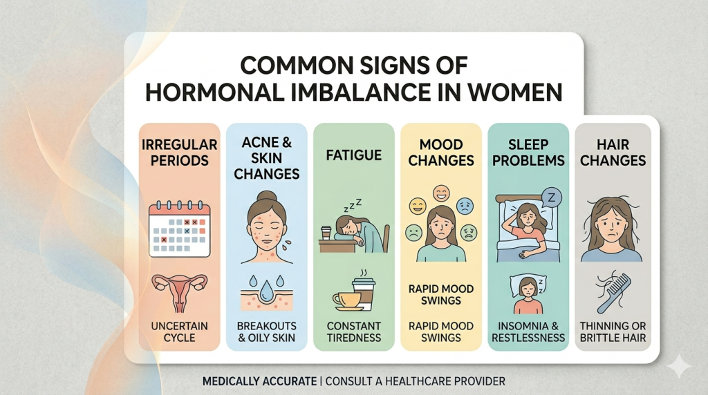 A hormonal imbalance means one or more hormones are too high, too low, or not working in the usual way for your body. Hormones help control things like periods, ovulation, metabolism, mood, sleep, and temperature regulation, so shifts can affect many parts of how you feel. Sometimes these changes are part of a normal life stage, but at other times they point to a condition that needs medical review. (MedlinePlus)