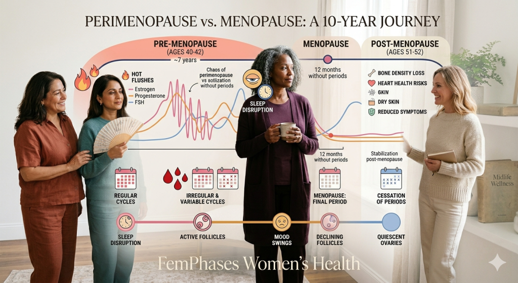 That distinction matters. Perimenopause is the lead-up. Menopause is the milestone. Post menopause is what comes after.