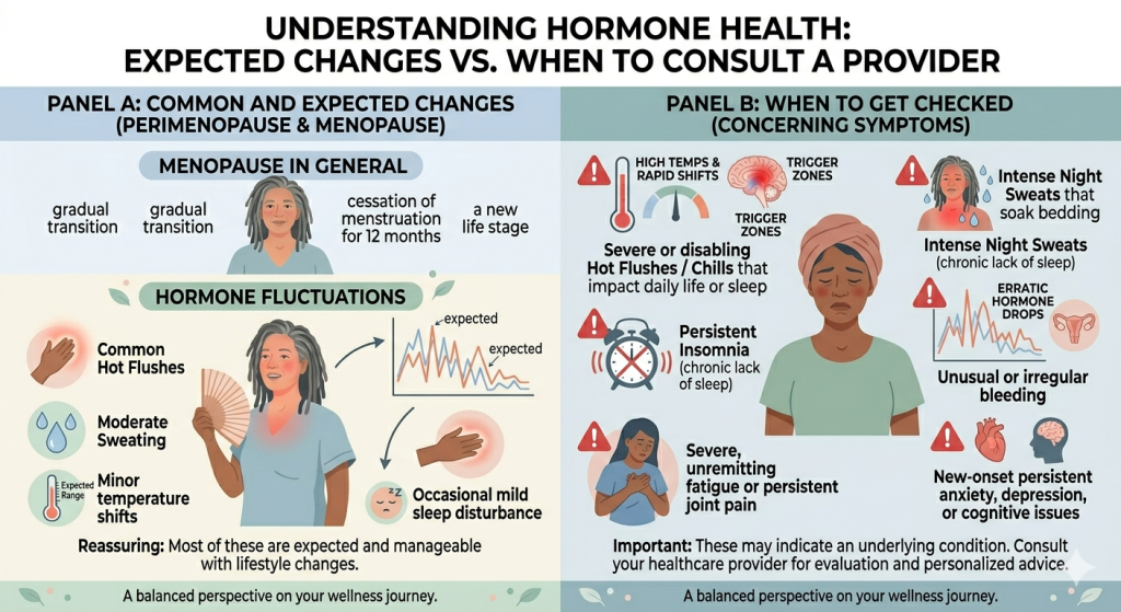 You should seek medical advice if symptoms are severe, unusual, affecting sleep or daily life, or if you are not sure menopause is the cause.
